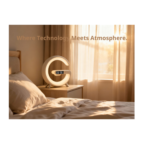Upgrade your space with a smart all-in-one charging station designed for convenience, comfort, and style. This multifunction device combines fast wireless charging, vibrant ambient lighting, Bluetooth audio, and alarm clock features into one beautiful, futuristic design.